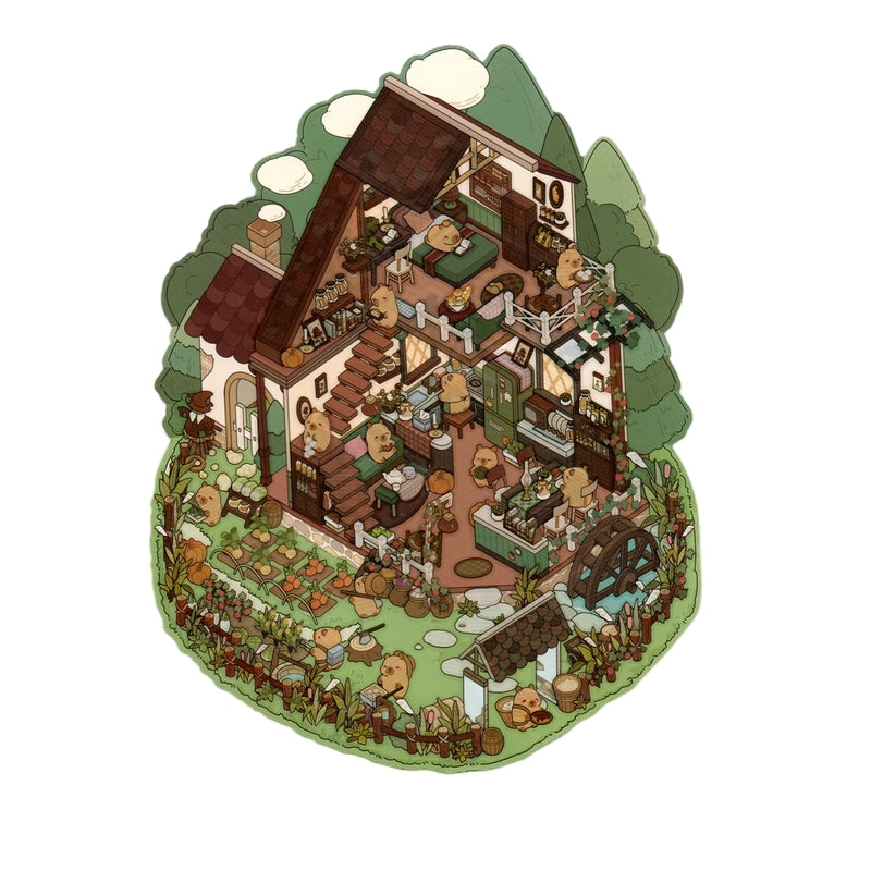 2.5D Capybara Home DIY PET Sticker Set | Large | Moderate